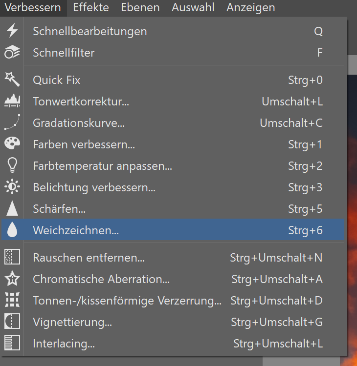 Machen Sie die oberste Ebene wieder sichtbar, suchen Sie in der oberen Symbolleiste die Registerkarte Verbessern und wählen Sie dort Weichzeichnen.