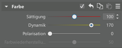 In dasselbe Kapitel habe ich auch den Schieberegler Kontrast aufgenommen, der neben der Dramatisierung des Fotos auch die Farbsättigung erhöht. Es empfiehlt sich daher, ihn zusammen mit der Dynamik anzupassen, da sie sich gegenseitig beeinflussen.