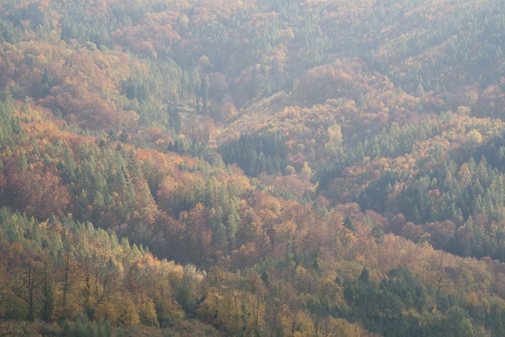 Im Herbst, vor allem morgens, ist es normal, dass die weiter entfernten Hügel in leichtem Nebel liegen. Sie sind zwar noch sichtbar, aber die Kamera nimmt sie nur noch mit sehr geringem Kontrast auf.