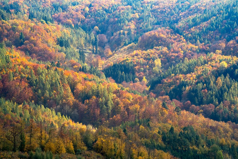 Herbstlandschaften sehen auf Fotos oft nicht so aus, wie wir sie sehen oder in Erinnerung haben. Manchmal liegt das an einer falschen Einschätzung der Kamera, die den automatischen Weißabgleich zu blau (niedrige Temperatur in Kelvin) einstellt. In anderen Fällen ist die Farbtemperatur zwar in etwa richtig, wirkt aber dennoch wenig „warm“.