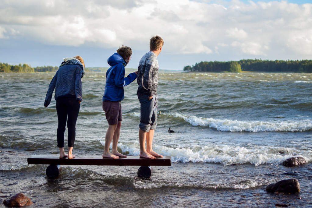 Egal ob es windig, kalt oder regnerisch ist, es lohnt sich immer Menschen zu fotografieren. Und dank dem Wetter erzählt die Aufnahme oftmals eine Geschichte. Auf dem unteren Bild sind drei Geschwister zu sehen, die auf einer Bank an einem wütenden Ufer des Sees balancieren. Das anscheinend langweilige Bild wird dadurch interessant, dass alle drei Personen die Ente beobachten, die von den Wellen kaum beeindruckt ist.