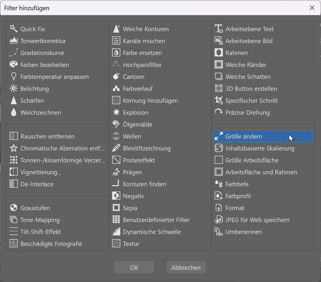 Wählen Sie dort „Größe ändern“ (Strg+E) aus und geben Sie die gewünschte Größe ein.