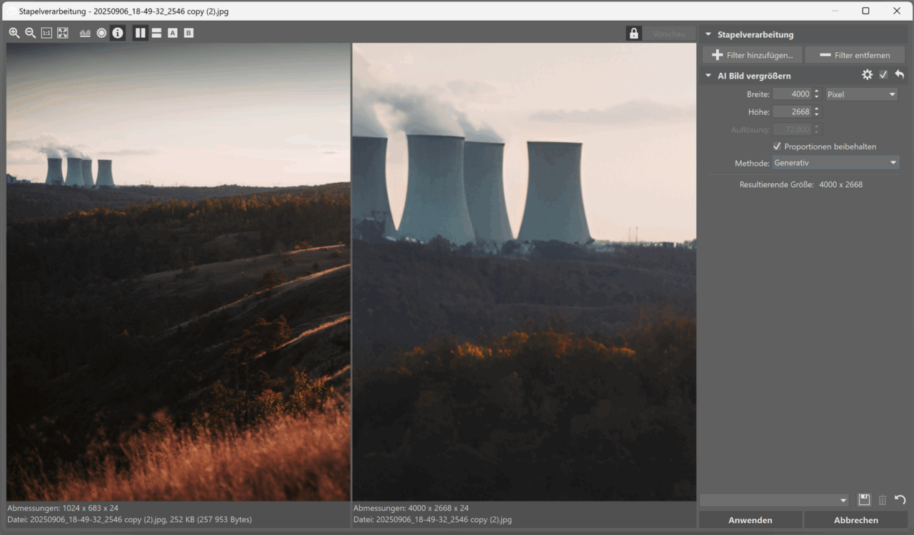 In der Stapelverarbeitung können Sie die Größe bei mehreren Fotos gleichzeitig erhöhen.