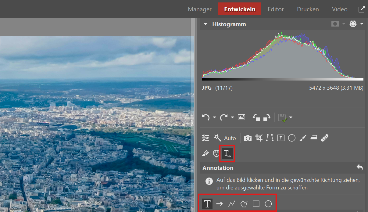 Fügen Sie Text, Pfeile und Objektbeschriftungen in Fotos ein: Probieren Sie die Funktion ANNOTATION in Zoner Studio aus