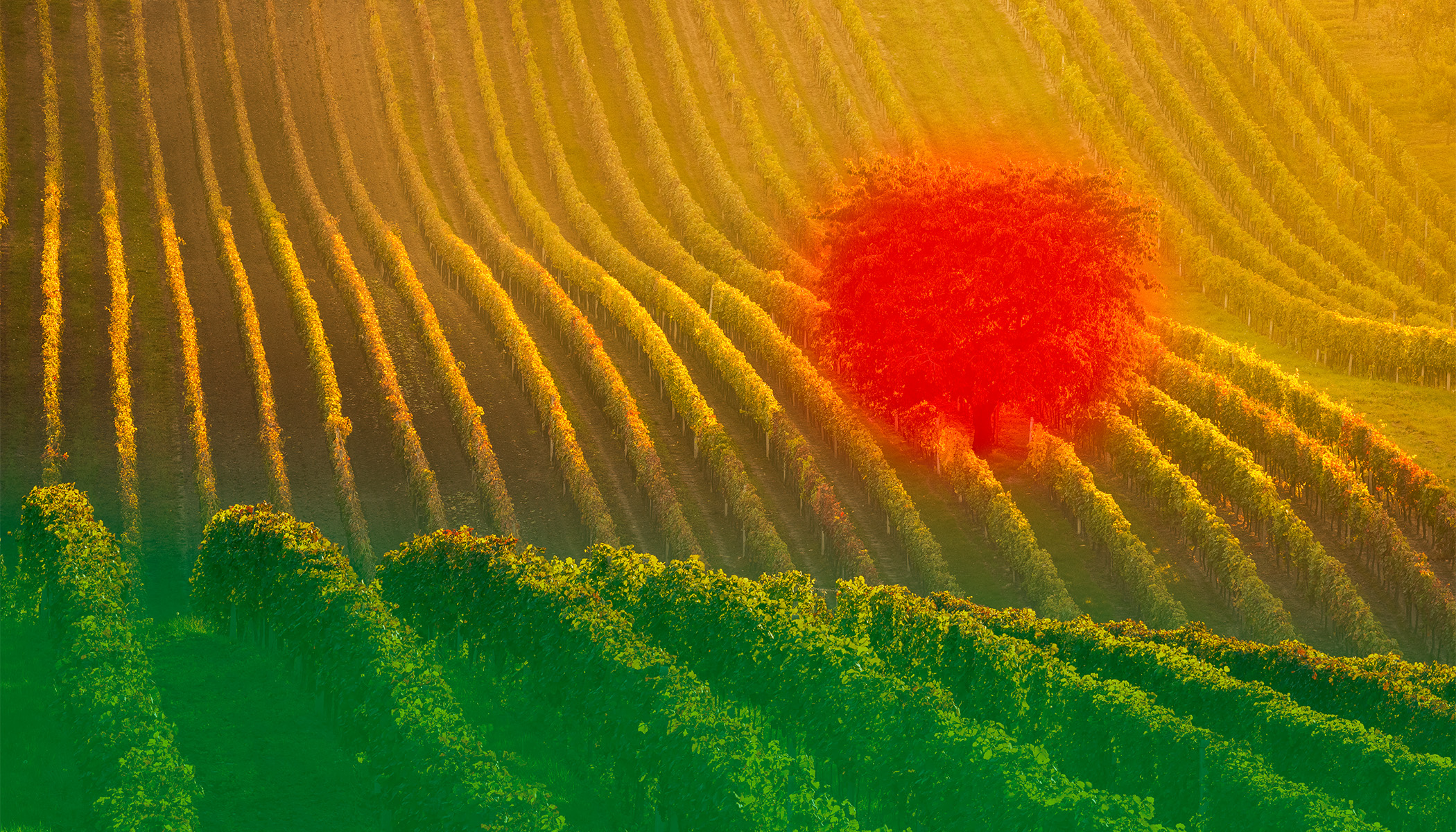 Das Foto sieht gut aus, aber das Hauptmotiv ist ein verlassener Baum, der allerdings in einem leichten Dunst liegt. Im Gegensatz dazu sind die nahe gelegenen Weinreben zu kontrastreich und auffällig. Beide Probleme lassen sich mit den lokalen Anpassungen (L) des Moduls Entwickeln beheben. Die konkreten Anpassungen variieren je nach Foto und Stil des Fotografen, sodass einige Änderungen deutlicher oder auch dezenter ausfallen können.