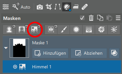 Die Abdunkelung des Himmels ist wahrscheinlich eine der häufigsten Operationen mit Masken. Je nach Szene lohnt es sich, die Auswahl des Himmels mit einer AI-Maske oder, wie im vorherigen Beispiel, mit einem linearen Verlauf (G) zu versuchen.