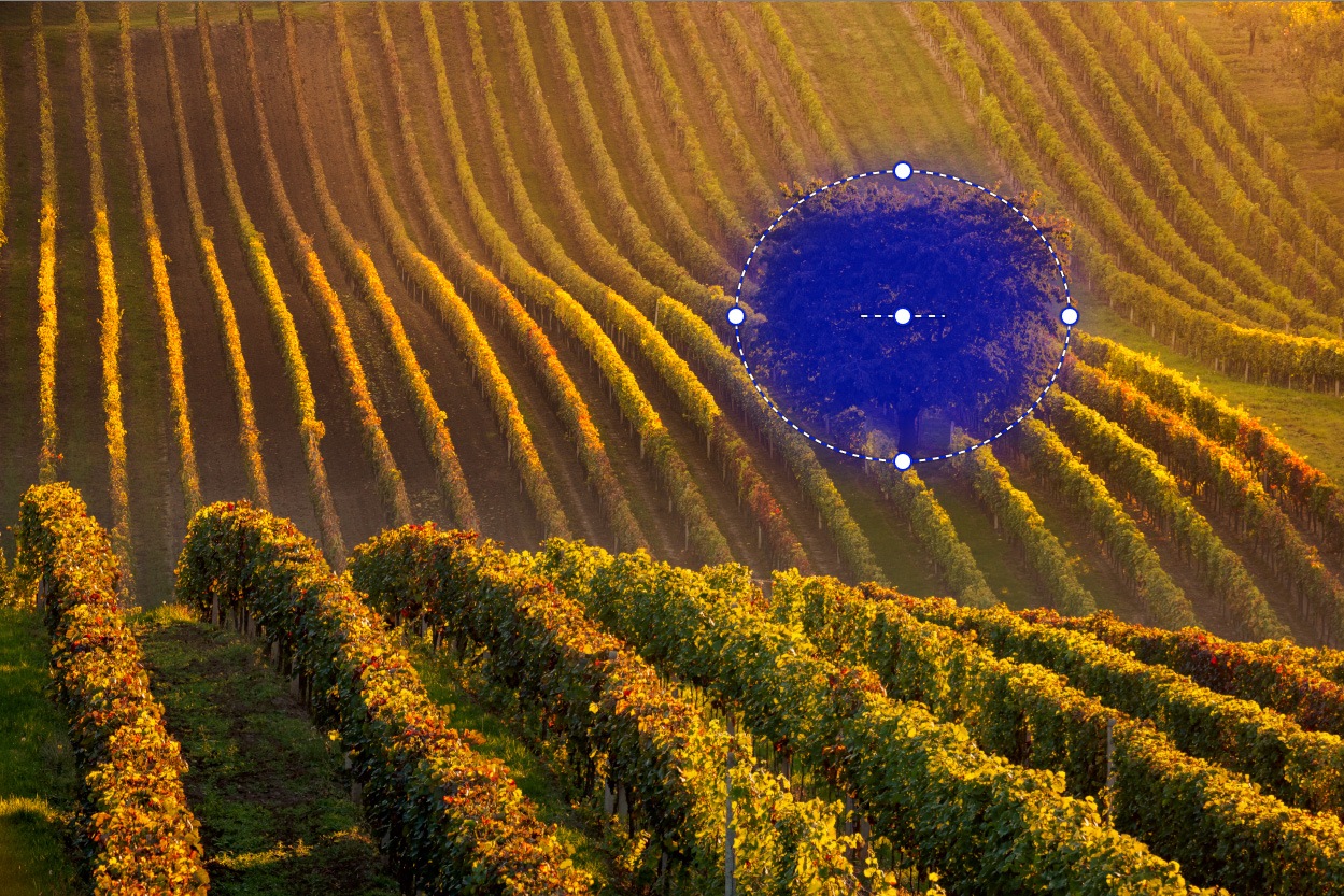 Das Foto sieht gut aus, aber das Hauptmotiv ist ein verlassener Baum, der allerdings in einem leichten Dunst liegt. Im Gegensatz dazu sind die nahe gelegenen Weinreben zu kontrastreich und auffällig. Beide Probleme lassen sich mit den lokalen Anpassungen (L) des Moduls Entwickeln beheben. Die konkreten Anpassungen variieren je nach Foto und Stil des Fotografen, sodass einige Änderungen deutlicher oder auch dezenter ausfallen können.