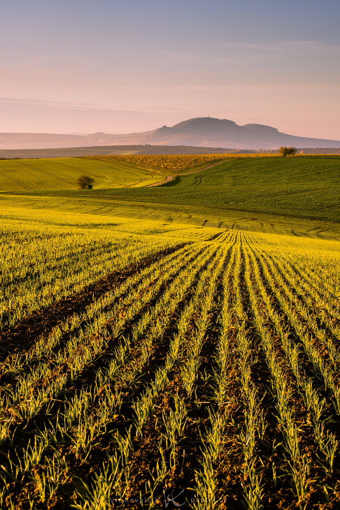 Einzelne Bäume oder kleine Wäldchen ergänzen die Szenerie auf passende Weise und werfen morgens und abends Schatten auf die leeren, gepflügten Flächen.