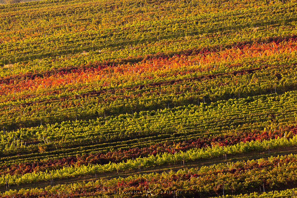 Vergessen Sie nicht, dass nicht nur große Bäume, sondern auch andere kleinere Landschaftselemente ihre Farbe ändern – oder auch Weinberge. Ihre Regelmäßigkeit steht im Kontrast zu den natürlichen Formen und Sie können sie sowohl von oben als auch aus der Nähe fotografieren.