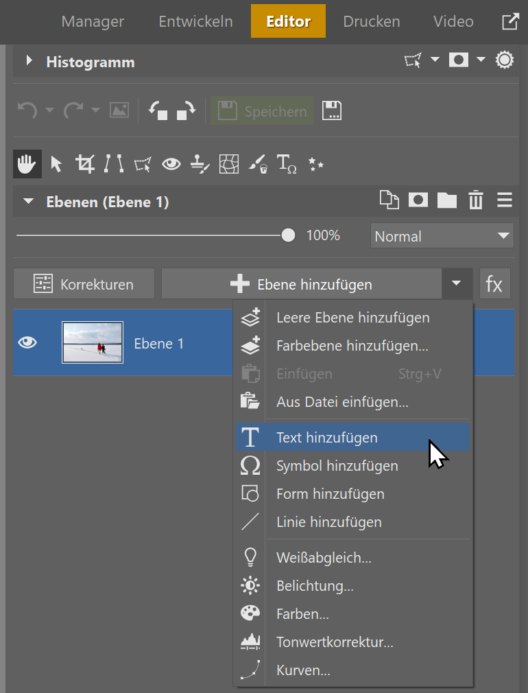 Grundlage bietet natürlich die Auswahl eines passenden Fotos. Sobald Sie eine passende Aufnahme gefunden haben, reicht es schon aus, wenn Sie in Zoner Studio das Modul Editor öffnen. Mithilfe von Ebenen und einem eingefügten Text erstellen Sie in wenigen Minuten eine originelle PF.