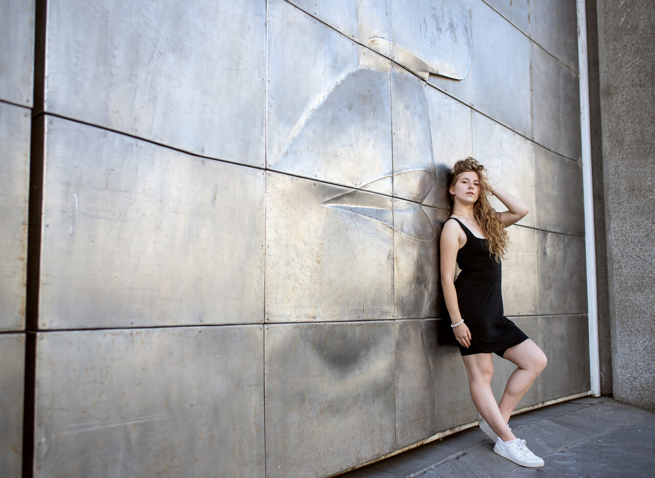 In der Stadt gibt es einen großen Vorteil – viele hohe Gebäude und helle Wände. Jedes hohe Gebäude hat mindestens eine Wand, auf die das Sonnenlicht fällt. Und das bedeutet, dass es auch von ihr reflektiert wird. Wie wir bereits wissen, kommt weiches Licht von großen Lichtquellen. Eine große beleuchtete Fläche wirkt dann wie ein riesiger Diffusor, der das Licht weich macht und zu uns zurückwirft. Das Ergebnis ist eine gleichmäßige und sanfte Beleuchtung, die ideal für Porträts ist. Die Haut wirkt glatter, die Schatten sind nicht so hart und die Augen müssen sich endlich nicht mehr unter den Lidern verstecken.