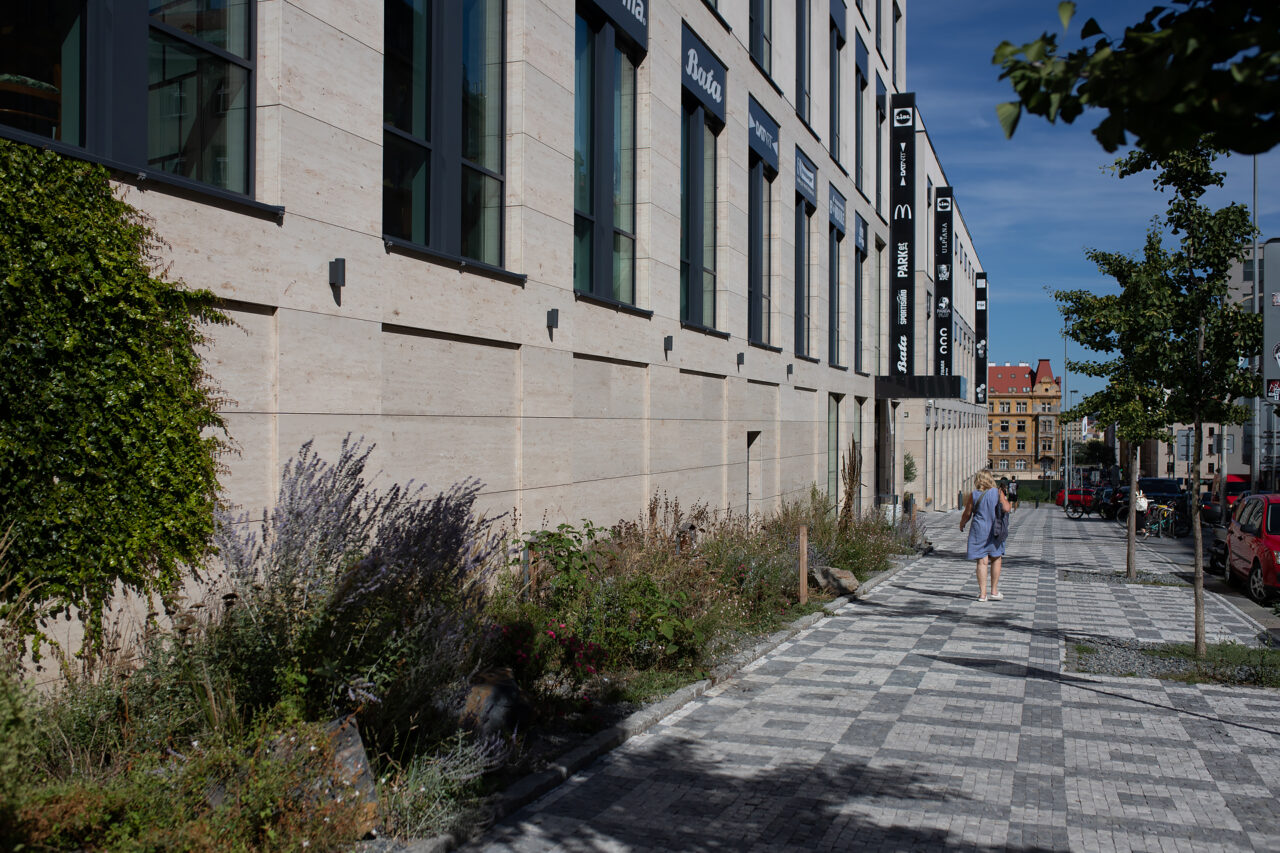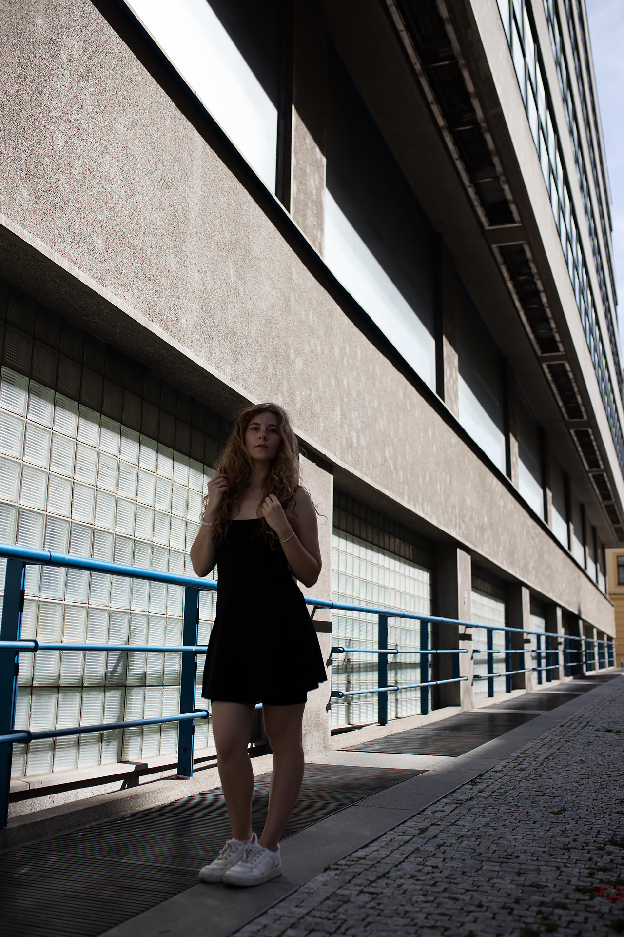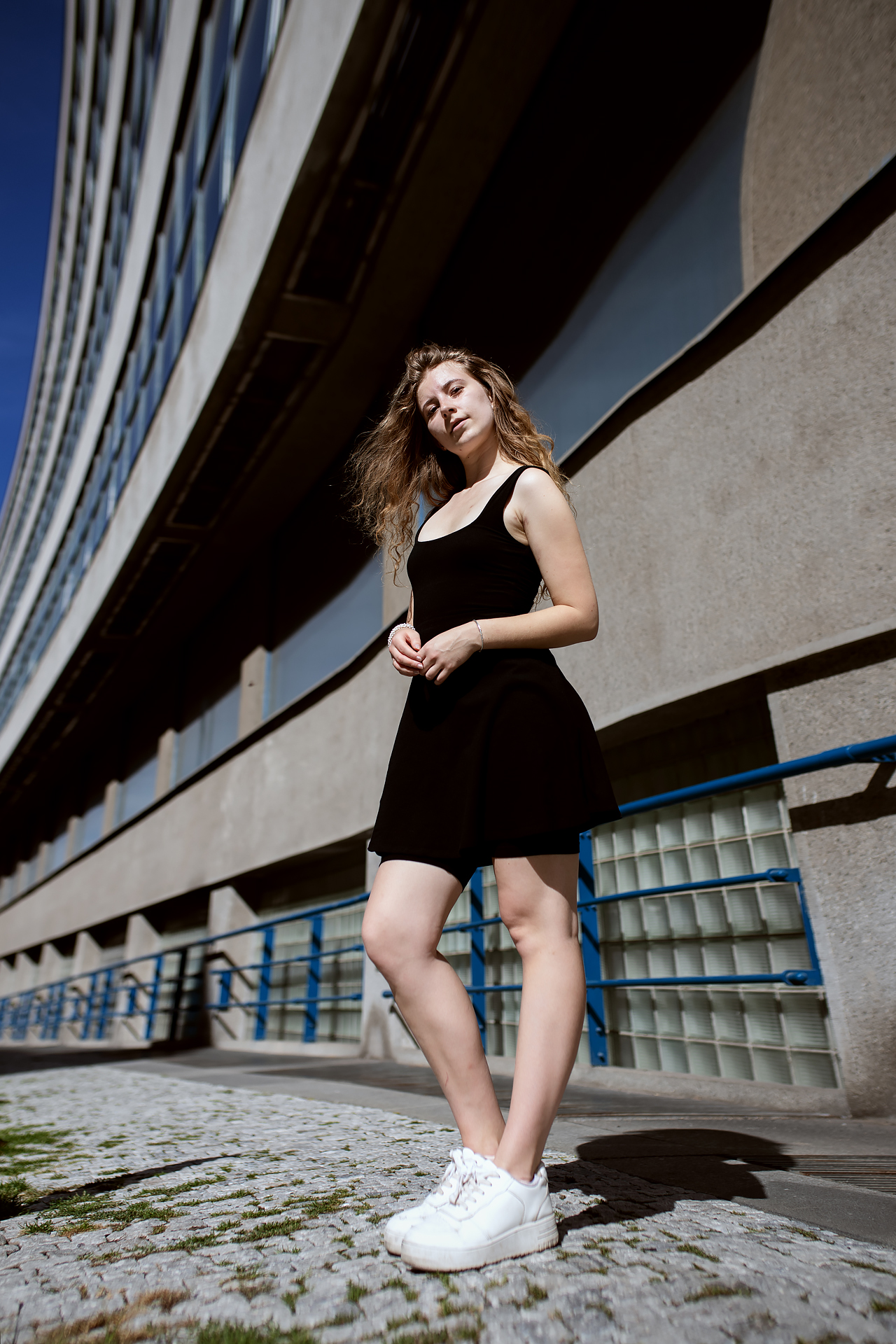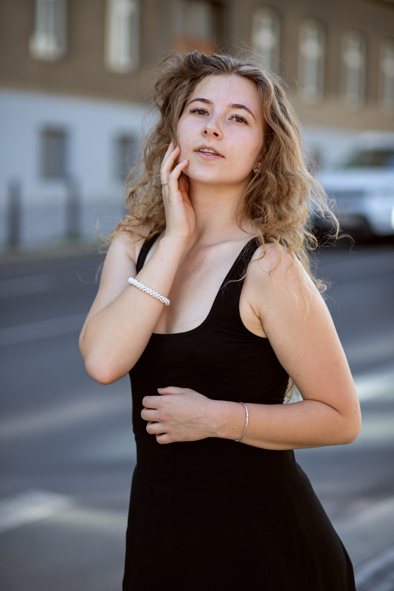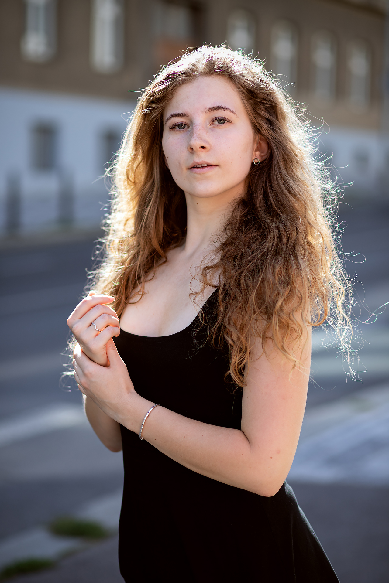 Wir trafen uns mit Adela am Nachmittag, als die Sonne noch hoch stand. Die Prager Veletržní-Straße, wo wir mit dem Fotografieren begannen, gilt nicht gerade als Mekka für Fotografen: intensiver Verkehr, geparkte Autos und hohe Häuser. Diese Licht-Challenge haben wir aber gemeistert.