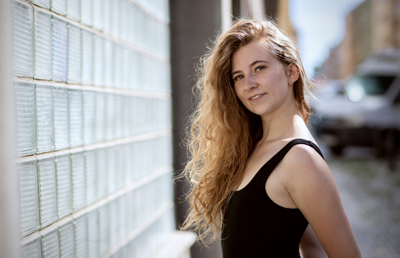 Ein störender Hintergrund kann selbst das schönste Licht ruinieren. Ideal ist es, wenn der Hintergrund dunkler oder im Schatten liegt – so tritt das Model in den Vordergrund. Allerdings kann auch der Hintergrund Teil des Porträts sein. Wenn Sie eine Wand mit einer interessanten Struktur oder Musterung sehen, scheuen Sie sich nicht, näher heranzugehen und das Model sich daran anlehnen zu lassen.