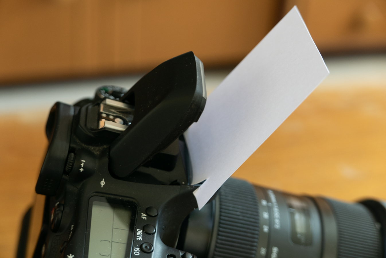 Bei der Nutzung eines eingebauten oder Systemblitzes entsteht Licht, das sehr hart ist und gleichzeitig jedwede Farbstimmung der Fotoszene unterdrückt. Die klassische Lösung besteht darin, die Richtung des Blitzes um das Fotoobjekt einzustellen und das Licht an einer größeren, farbneutralen Fläche (klassische weiße Decke oder Wand) zu reflektieren. Auf das Fotoobjekt fällt so diffuses Licht, das einen viel besseren Charakter hat.