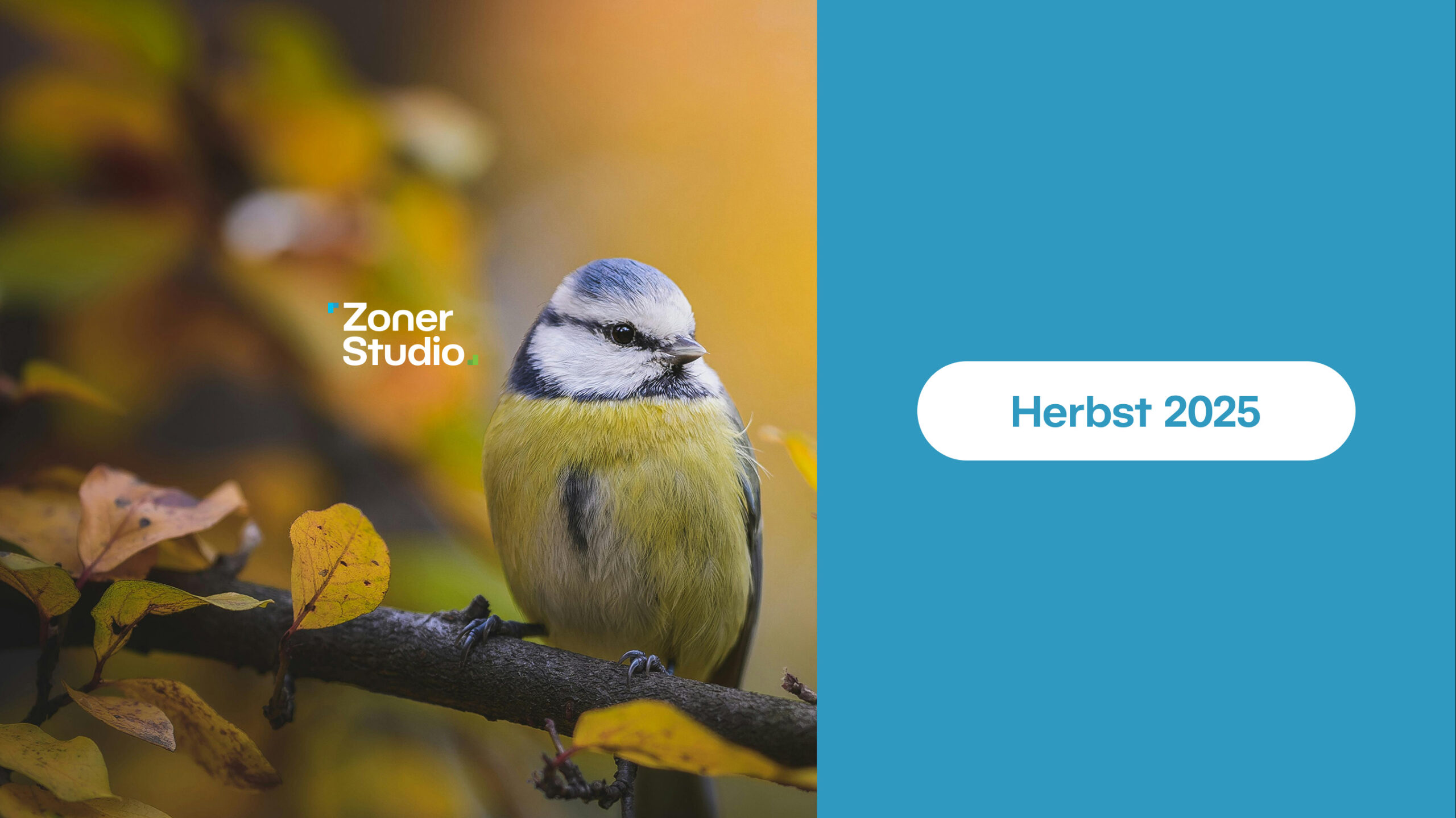 Das Zoner Studio Herbst-Update für 2025 bringt deutliche Verbesserungen, die die Bearbeitung von Fotos beschleunigen und angenehmer machen. Künstliche Intelligenz hilft bereits bei der Auswahl der Fotos – die AI Detailvorschau erleichtert das Sortieren, die Funktion AI Vergrößern verbessert die Qualität der Ausgabe und die neue Vorher-Nachher-Ansicht sorgt für mehr Überblick bei der Bearbeitung. Außerdem gibt es zahlreiche praktische Verbesserungen für die Erstellung von Fotobüchern, Retusche, Videos und Zuschneiden.