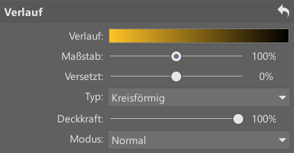 Im Modul Editor ist das Ganze etwas komplexer, dafür steht Ihnen aber ein leistungsfähiges Werkzeug zur Verfügung, das Sie ganz nach Ihren Wünschen anpassen können. So kann der Verlauf selbst mehrere Farben enthalten. Es spricht also nichts dagegen, statt der erwähnten Schwarz-Gelb-Kombination zum Beispiel Schwarz-Gelb-Orange-Weiß zu erstellen, damit ein Verlauf einen Effekt erzeugen kann, der mehreren einfacheren Ebenen auf einmal entspricht.