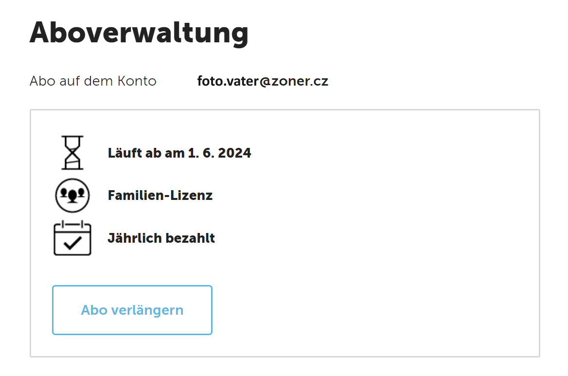 Die Familienlizenz können Sie auch über die Option Verlängern in Ihrer Verwaltung erwerben, wodurch Sie jedoch auch Ihre bestehende Lizenz verlängern.