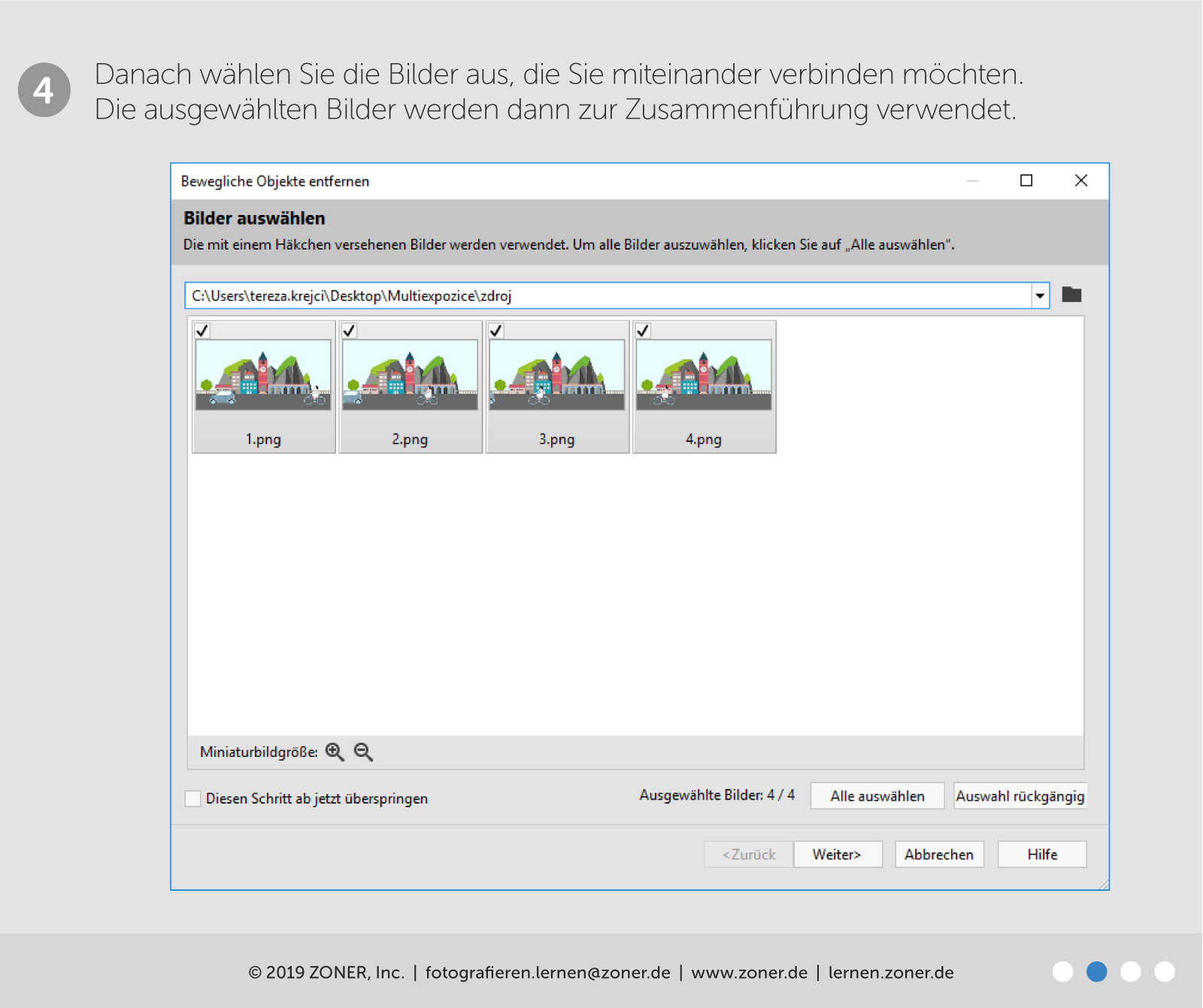 Sie müssen hierfür nur mehrere Aufnahmen der gleichen Szene machen, auf der sich die Objekte jedes Mal an einer anderen Stelle befinden. Und danach müssen Sie die Bilder nur noch miteinander verbinden. Erfahren Sie wie.