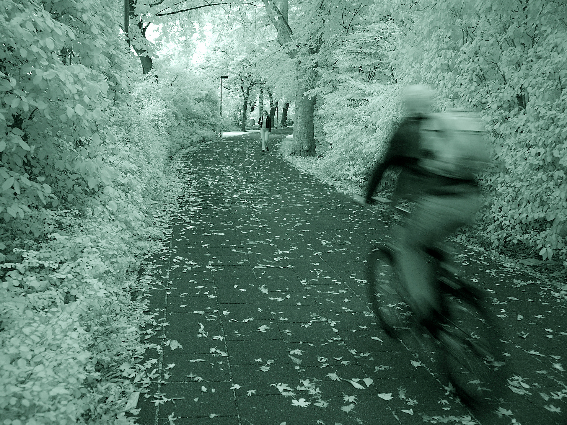 Interessant ist, dass es bei IR-Fotografie nicht so sehr um Farben geht, sondern darum, wie verschiedene Materialien auf Infrarotstrahlung reagieren. Grünpflanzen – Blätter, Gras, Sträucher – reflektieren diese stark, weshalb sie auf dem Bild hell erscheinen. Wasser und Himmel hingegen saugen die IR-Strahlung auf und erscheinen daher auf den Fotos fast schwarz.