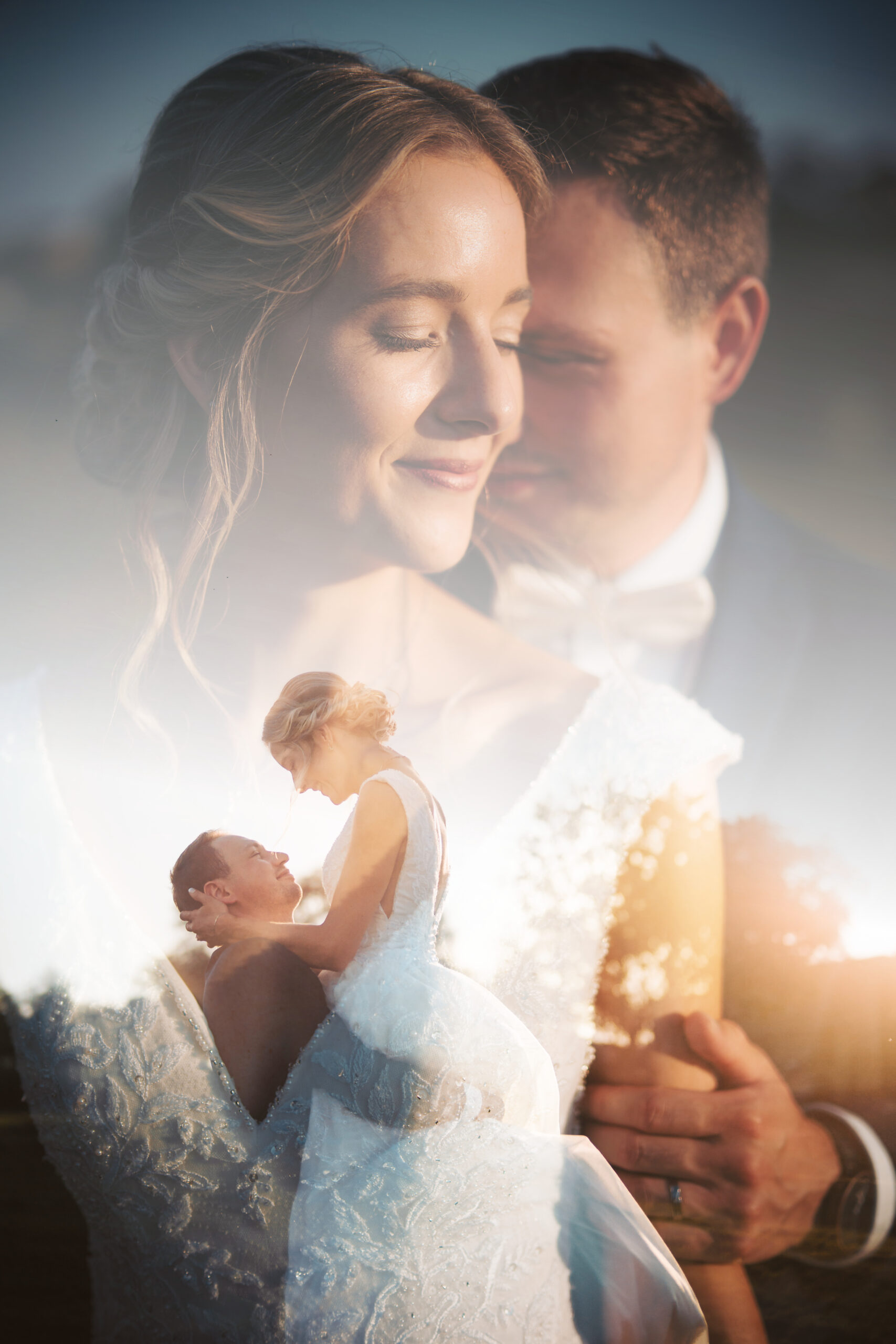 Die Komposition eines Hochzeitsfotos kann von klar und einfach bis hin zu sehr kompliziert, mit vielen Elementen reichen. Wenn Sie einen visuell gefüllten Raum bevorzugen, ist Foto-Compositing ein interessanter Weg für Sie. Dabei werden zwei verschiedene Bilder in ein Bild kombiniert, damit sie sich teilweise überlappen.