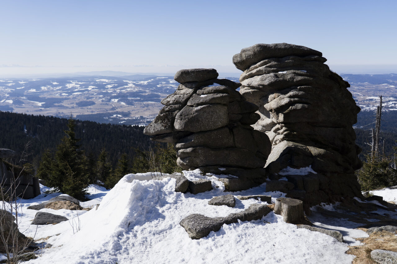 In den tiefer gelegenen Regionen des Böhmerwaldes finden Sie tiefe Wälder, mäandernde Flüsse, Moore und Torfmoore. In höheren Lagen wird die Vegetation spärlicher und es tauchen Ebenen und Felsen auf. Eines meiner Lieblingsziele im Winter ist der Gipfel des Plöckensteins.