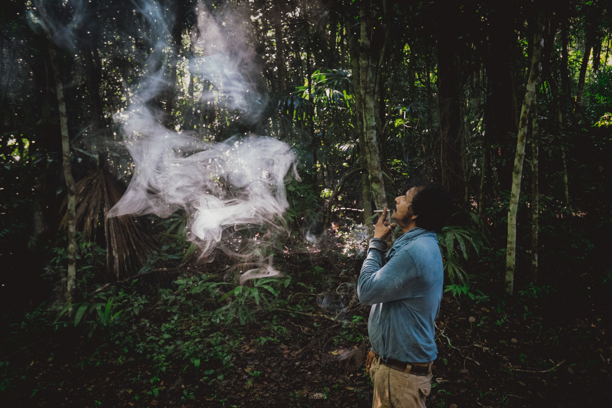 Petén ist ein faszinierender Ort, besonders wenn die Sonne scheint. Die Lichtstrahlen, die durch das üppige Grün dringen, werfen dramatische Schatten und wirken oft wie Scheinwerfer. Bei bewölktem Himmel ist der Dschungel etwas trister. Alles ist gleichmäßig beleuchtet und die Objekte verschwimmen in der grünen Flut. In solchen Fällen ist es besser, sich auf Details zu konzentrieren.