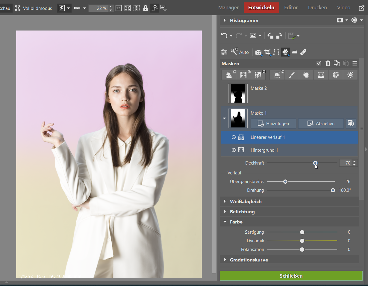 - Wie man durch Abziehen von Masken einen fließenden Farbverlauf erzeugt.