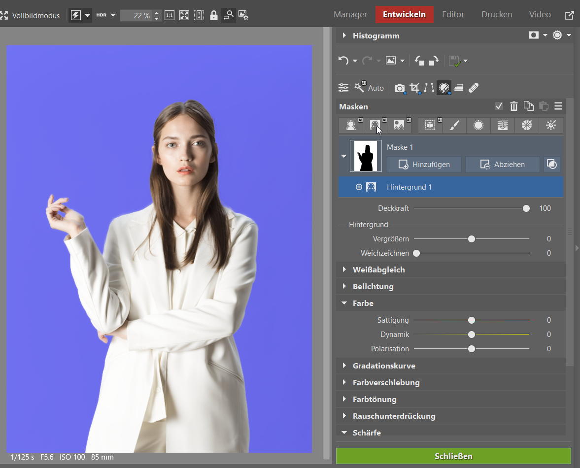 Schneller zweifarbiger Hintergrund in Zoner Studio