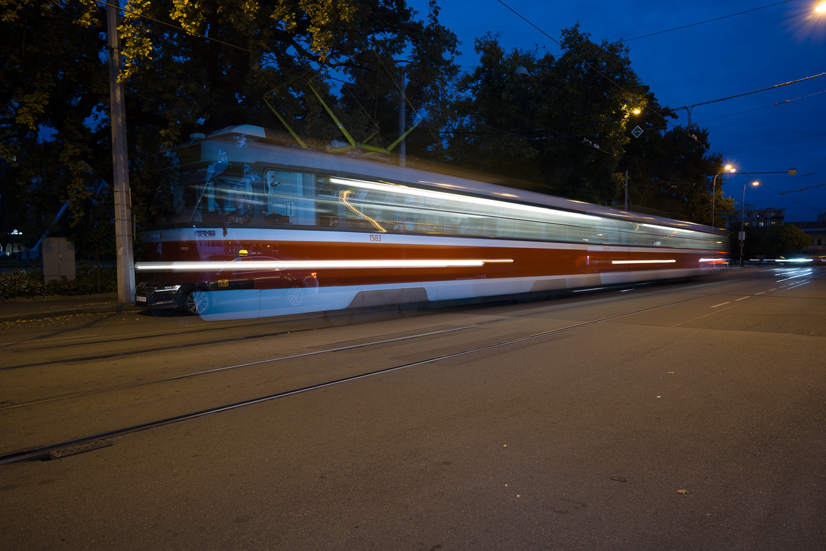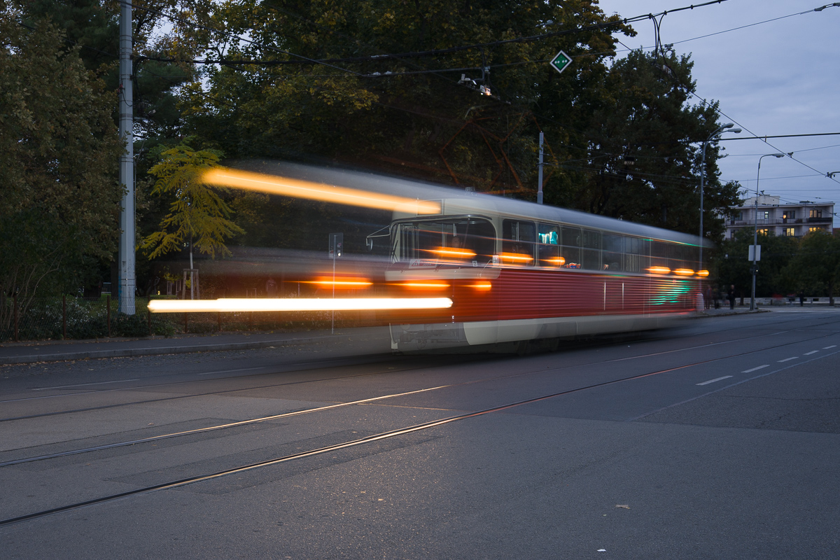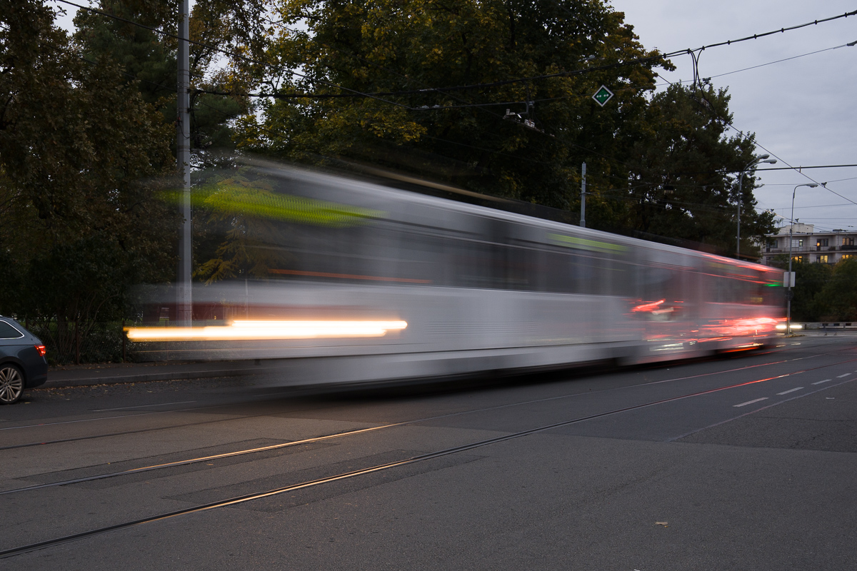 Zum Vergleich noch eine Straßenbahn ohne Blitz, die bis zur Unkenntlichkeit verschwommen ist: