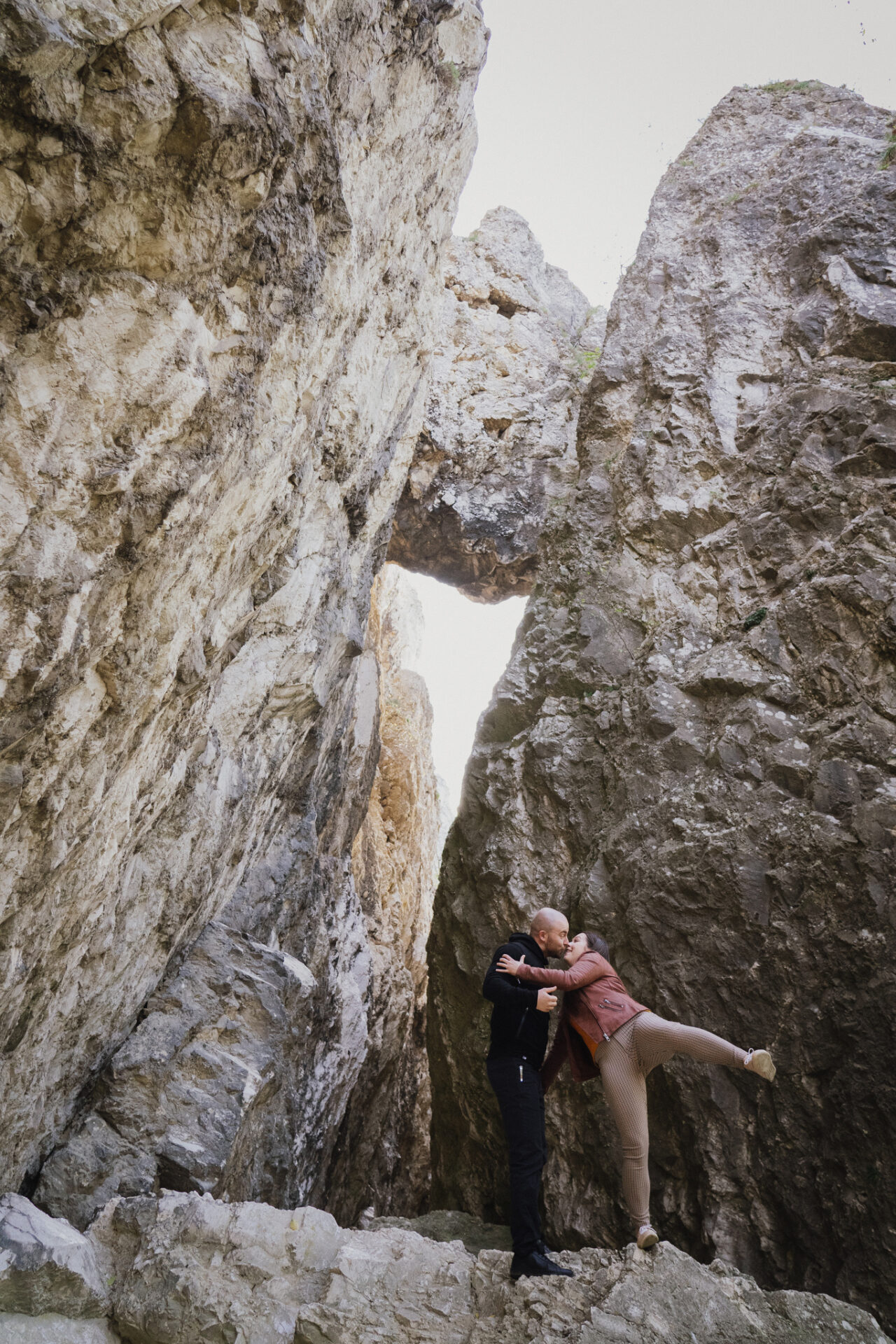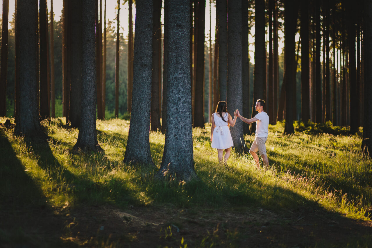Deshalb hat es sich für mich viel besser bewährt, der direkten Sonne einfach ganz aus dem Weg zu gehen. In Städten funktioniert Schatten gut, besonders wenn man eine helle Fassade findet, die das Licht gut reflektiert. In der Natur wiederum funktioniert der Wald gut, in dem es nie an größeren schattigen Flächen mangelt. Alternativ können Sie Ihr Paar auch in Innenräume mitnehmen, die zudem als hervorragende Ausweichmöglichkeit für den Fall von Regen dienen. Wenn ich einen Ort für ein Paarshooting auswähle, versuche ich, all diese Alternativen zur Verfügung zu haben.
