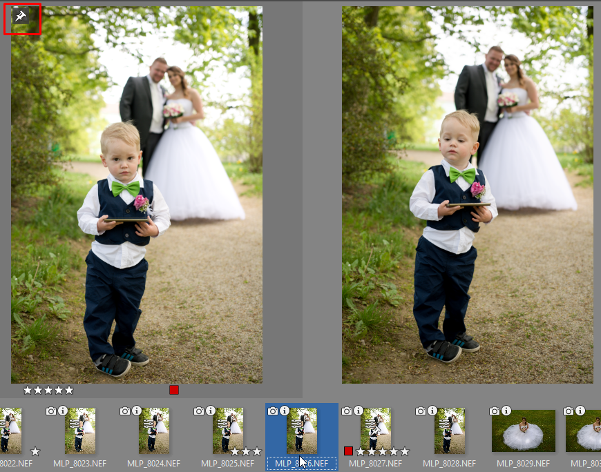 Ein weiter Vorteil der Mehrfachauswahl besteht darin, dass Sie Fotos anheften können. Hierdurch wird der Vergleich eines Bildes mit anderen Aufnahmen noch mehr erleichtert.