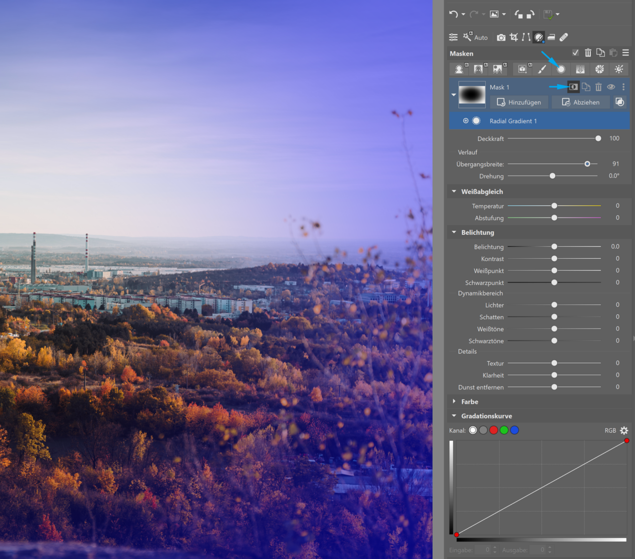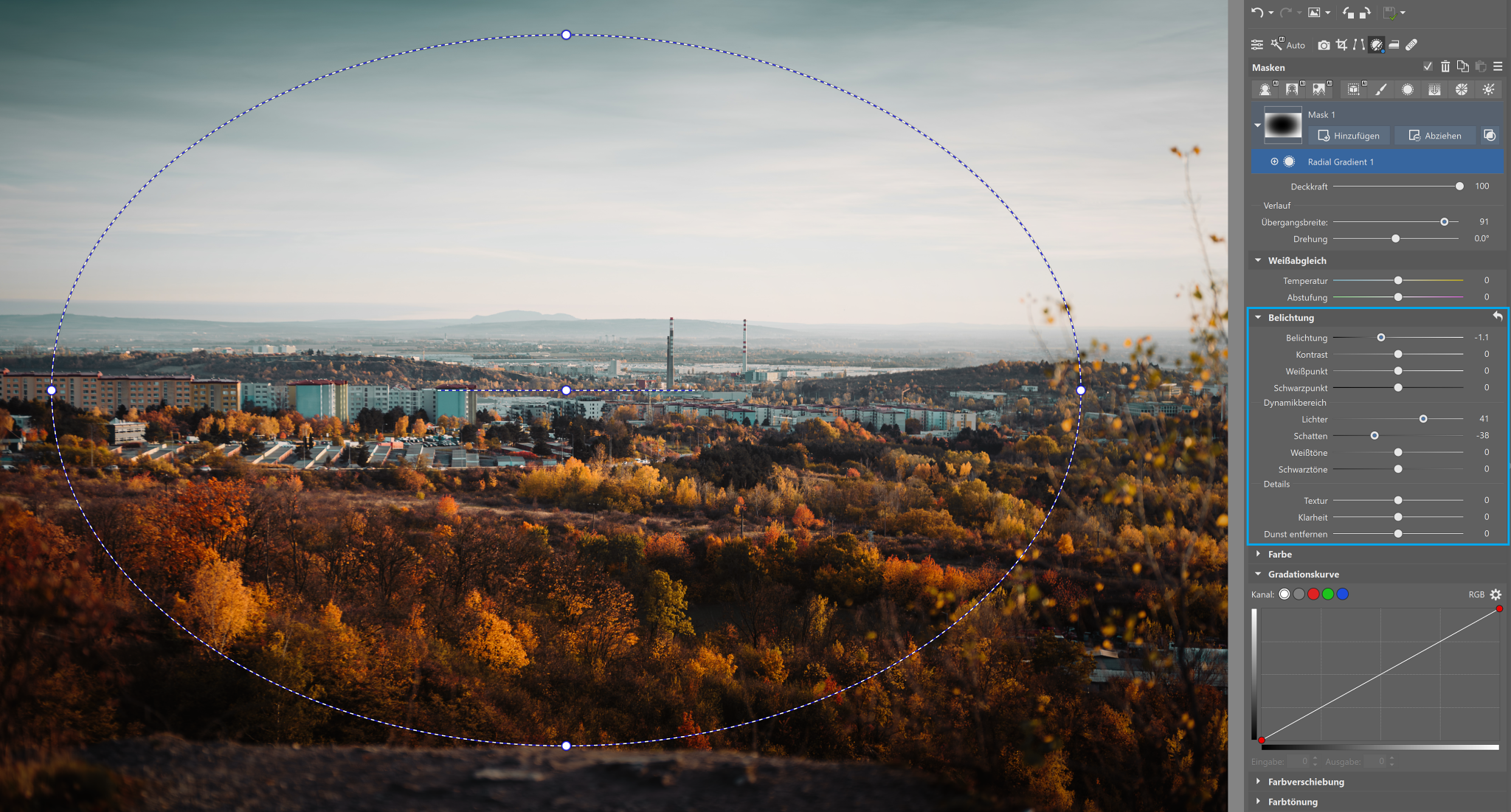 - Wie Sie mit dem kreisförmigen Verlauf Farben lokal anpassen können, ohne den Rest des Fotos zu beeinflussen.
